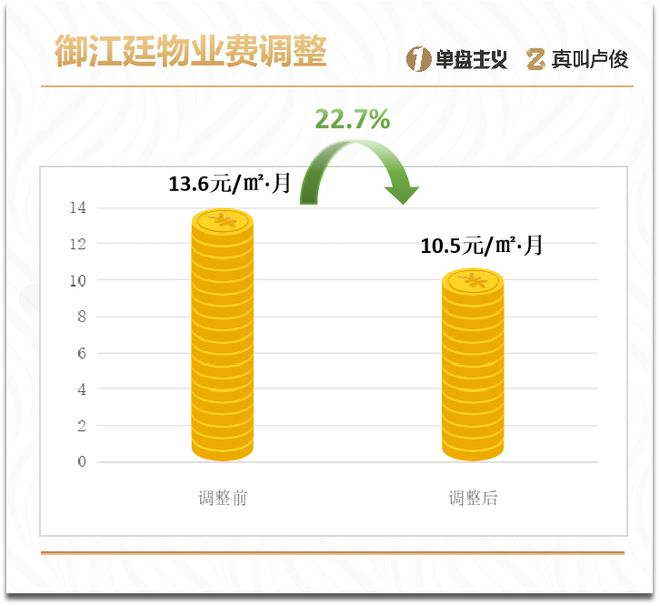 将物业服务费从原价 13.6 元 /㎡调整为 10.5 元 /㎡