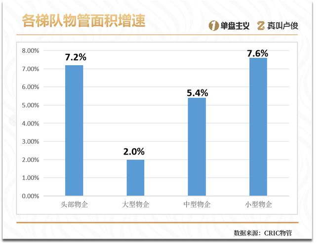 头部企业的管理面积不仅基本盘大,增速也比较快,特别是和竞争力还比较强的大型、中型物企对比增速明显较快