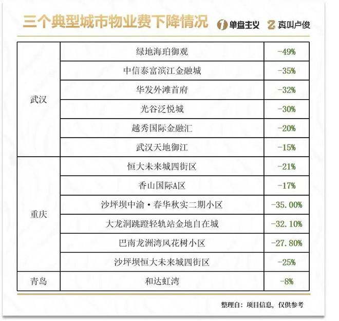 不仅降,降的还不少,个别楼盘的物业服务费降幅高达 49%,几乎腰斩