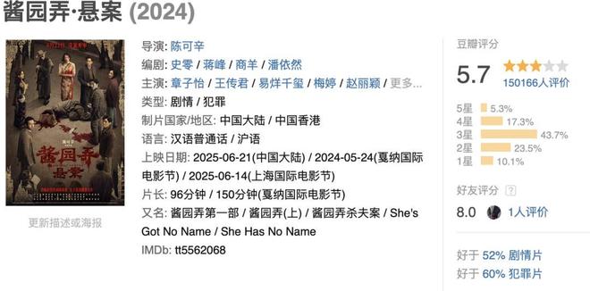 ▲《酱园弄?悬案》的豆瓣评分。图 / 豆瓣截图