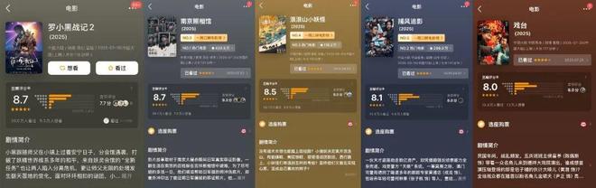 7 月,《南京照相馆》用小人物视角刷新主旋律叙事,《罗小黑战记 2》和《戏台》赢得粉丝、戏迷群体的口碑。8 月,《浪浪山小妖怪》刚刚凭借 “上美美学” 和与打工人的共鸣,拿下了中国影史二维动画电影票房冠军,《捕风追影》就以 8.1 分和单日票房夺冠的姿态杀出,71 岁的成龙与 67 岁的梁家辉联手贡献了 “近 10 年最佳动作片”。即便是豆瓣 7.6 分的《长安的荔枝》,在今年暑期档的口碑排名也进不了前五。