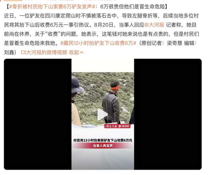 @我不是谦哥儿:#骨折被村民抬下山索要 6 万驴友发声#