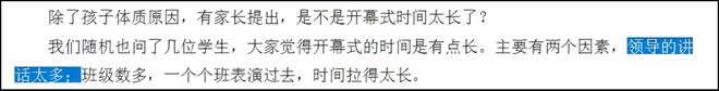 记者去采访了家长和学生,大家觉得也有两个因素。一个是班级数多,一个个班表演过去,时间拉得太长。