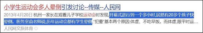 2013 年,杭州一个小学举行运动会,开幕式 8 点开始,到 9 点就有孩子从场上被扶下来。
