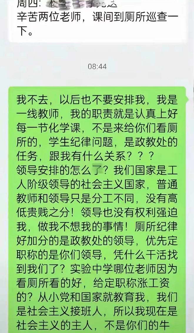 比如要拉化学课老师去看厕所,问题是看厕所看的好,奖金是发给政教处的。