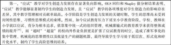 去年一篇基于 SSES2019 数据分析的论文指出:“应试” 教学对学生创造力发展的影响显著为负。