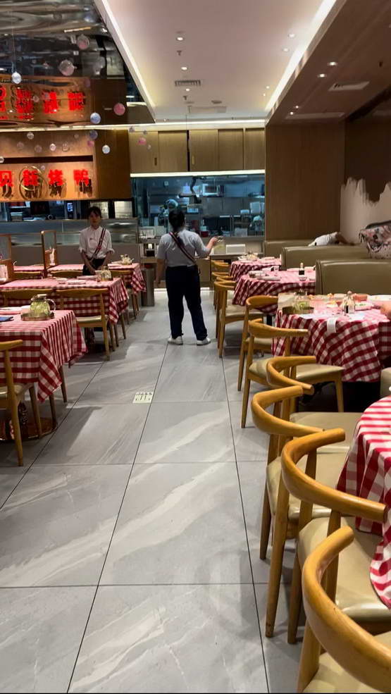 门店厨师长:很大,单日营业额下降了 2 万到 3 万之间,下滑了快一半。平时这个点其实都是满座的,你看,这一大片现在很空。