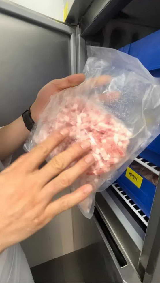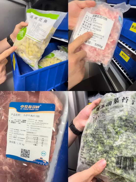 门店厨师长:如果这个做法不合格的话,它就不会流入市场的。你看这个牛肉,生产时间是 2025 年的 8 月 21 号,保质期虽然是两年时间,但它用不了那么长时间,今天就能用 6 袋 - 7 袋肉,从中央厨房到店两三天就能消化完。