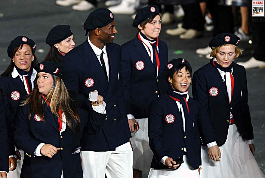 此外中国的服装制造业也成为伦敦的焦点,美国代表团的复古风服装就是由中国生产,而埃及代表团曾声称要穿中国山寨的阿迪达斯运动服参加开幕式的事件也让中国山寨名扬世界。图为伦敦奥运会开幕式,美国代表团入场瞬间。
