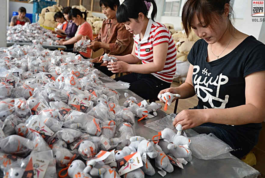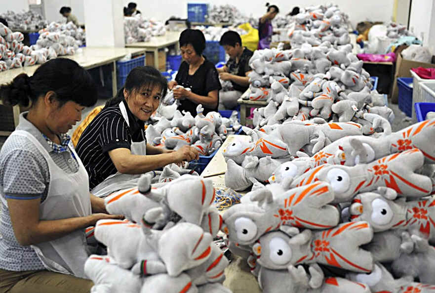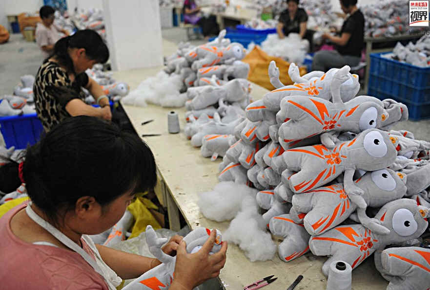 然而事实并非如此,阿迪达斯只要给代工工厂下订单就行了,不用考虑人工成本问题。阿迪达斯在中国只是将人工成本的上涨风险转嫁到了代工厂家,为订单考虑,利润被压缩的也只能是中国的代工工厂。图为中国工人生产奥运吉祥物。