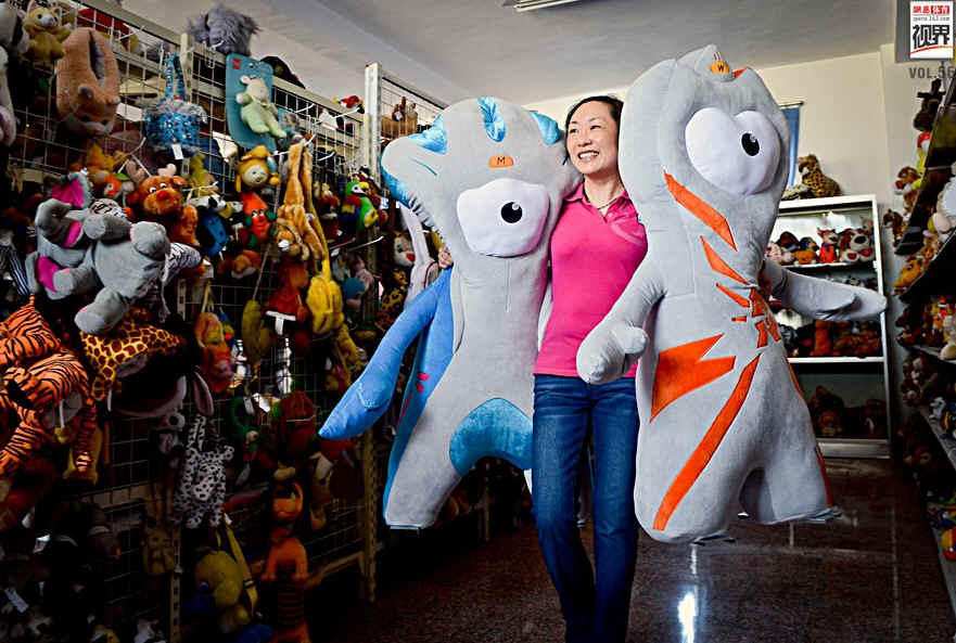 在伦敦奥运会开幕前,彩绘公司将保质保量地完成了近50万只伦敦奥运会文洛克和残奥会曼德维尔的吉祥物玩具的生产任务,按时运销伦敦订货商。图为彩虹公司员工在工作。