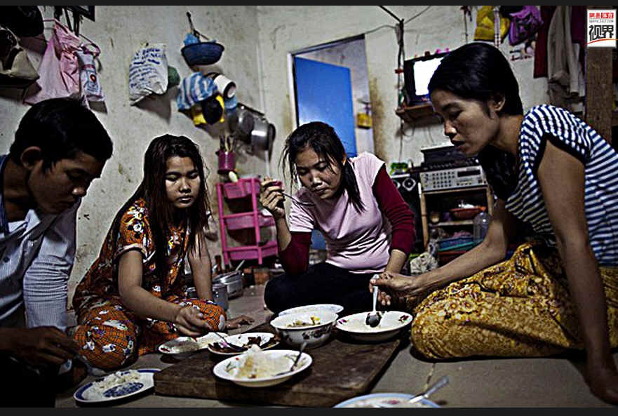 32岁的阿迪达斯员工Toch-Srey-noun透露,他们一个月工资大概是90美元左右,而她还必须把其中的一半寄给自己的母亲,作为底层的劳动者,她并不知道一双阿迪达斯的球鞋则卖到40美元,这等于她两周的工资。图为柬埔寨阿迪达斯员工生活照。