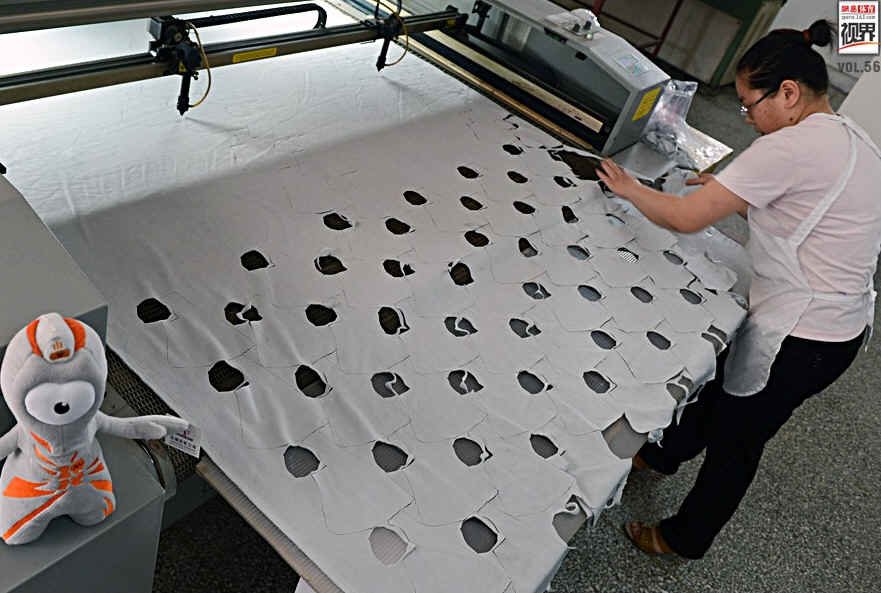 从材料、裁片、绣花、半成品,每个过程都建立严格的数据管理检验,不让一个不合格品出厂,成品检验都验收二遍以上。奥组委委派的专门验货公司到工厂验货,都赞赏有加。图为彩虹公司员工在工作。