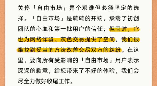 前段时间,转转突然宣布要关掉自己的自由市场了。