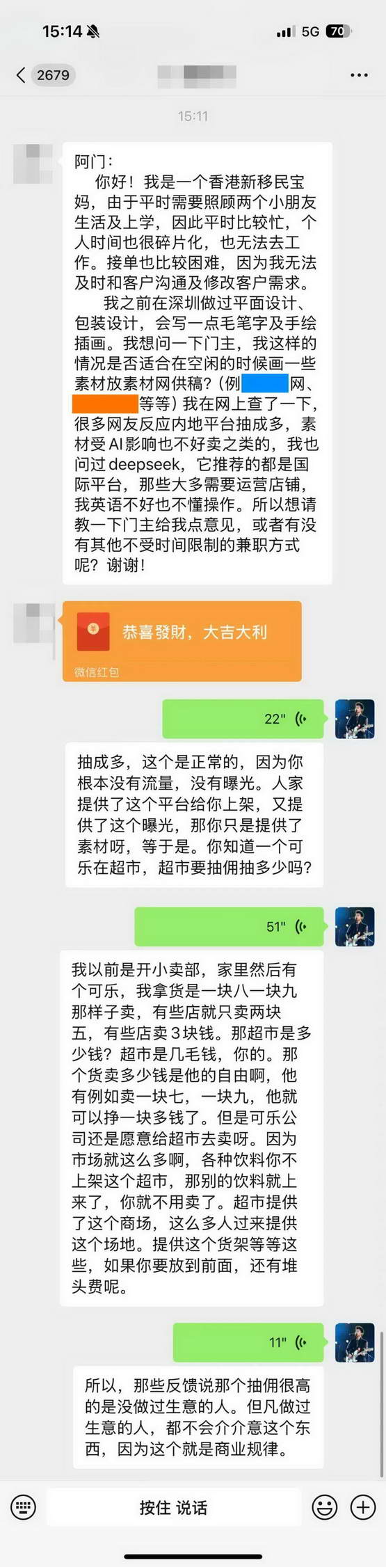 这位门友谈到的 2 个卖素材的平台,都说佣金很高,所以让她有点望而却步,我查了一下,佣金在 25%-40% 之间,其实我觉得这个还在合理范围,因为平台要出平台系统和流量,用户只需要出素材产品,然后等着收钱了,大家都有成本,平台是持续成本,用户是一次成本,两者很不同的。