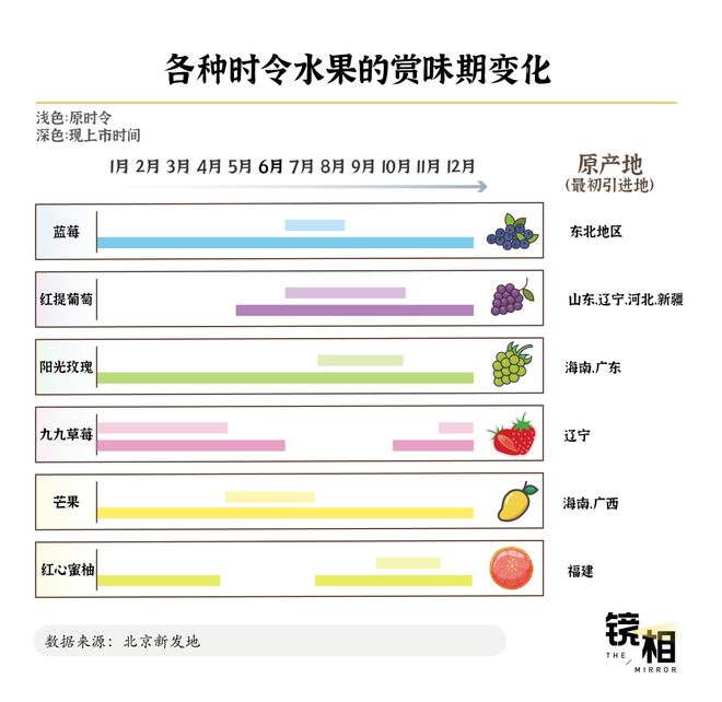 如今市场上流行的枇杷、山楂、龙眼、杨梅品种等皆是中国原产,可不得不承认的是,如今市场上份额更大、讨论度更高的苹果、葡萄、草莓、梨、柑橘等水果的有名品种,多源自外国引进。