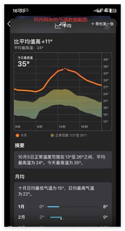杭州的高温是比平均值高了 11 度,这已经很夸张了。