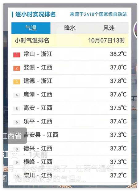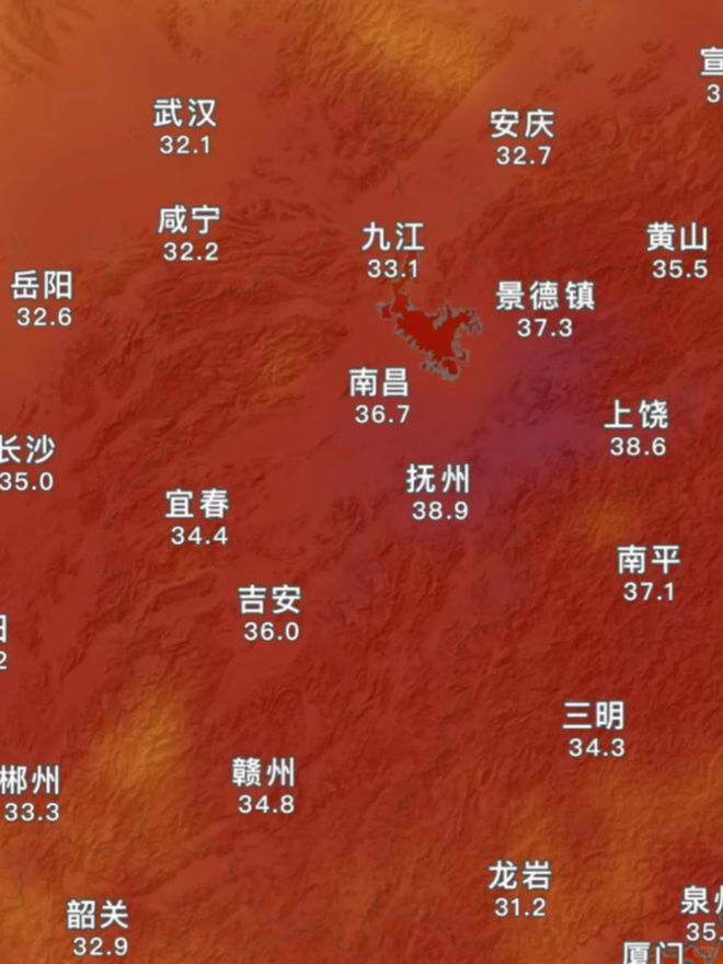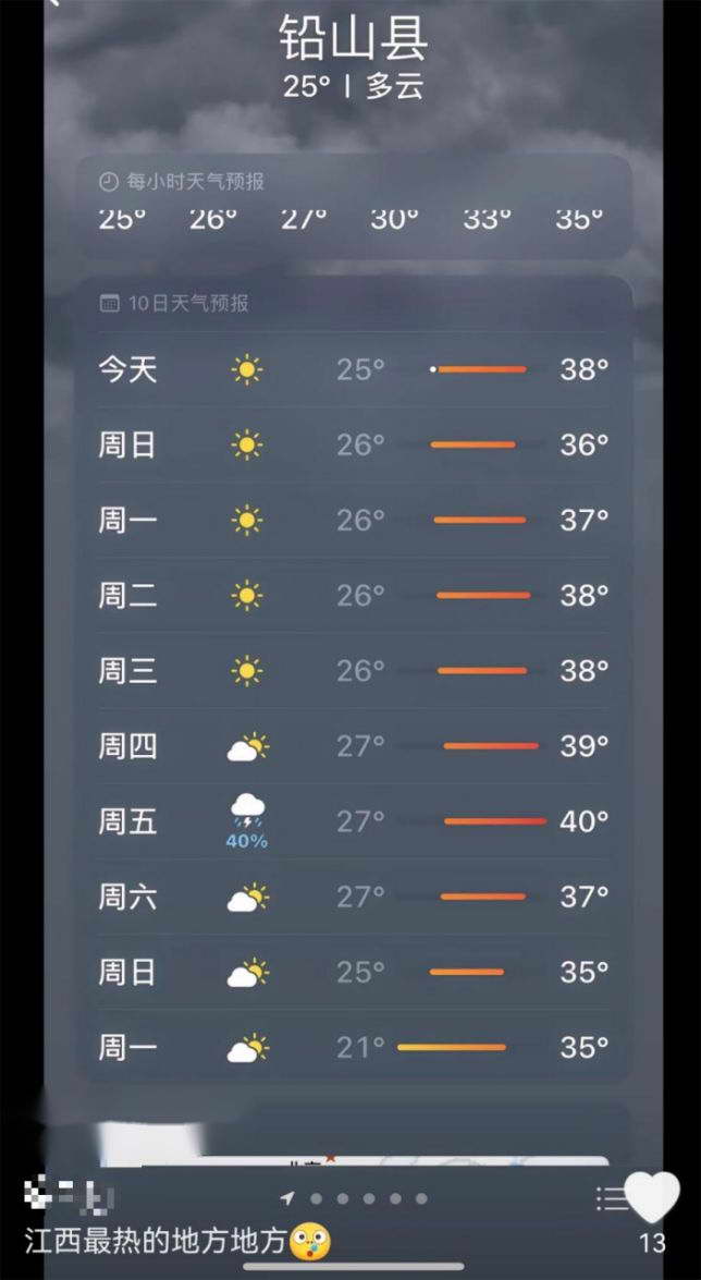 但它依然不是在江西最热的县,铅山县可能马上要冲破 40 度了。