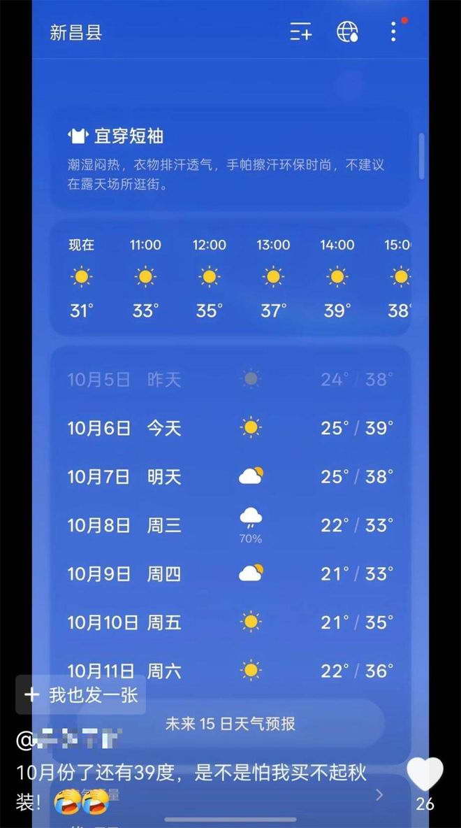 但南方很多城市依然 30 度,还不是靠近热带的地方。