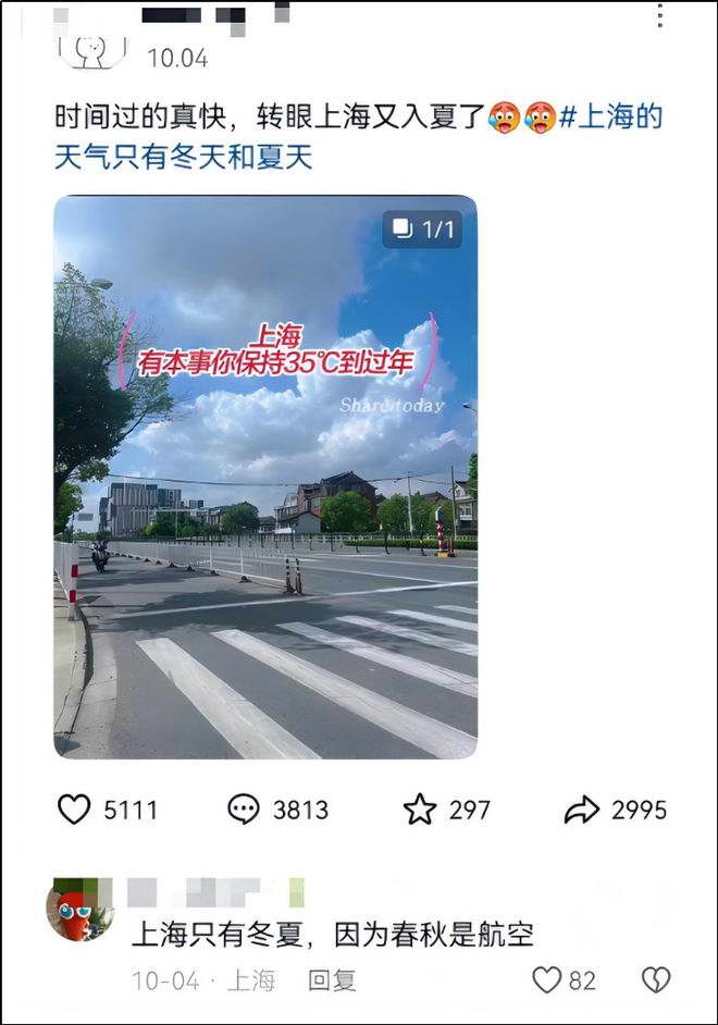 网友都要吐槽:上海只有冬夏,因为春秋是航空。