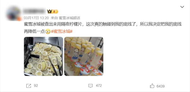 “退一万步来说,蜜雪用隔夜柠檬,难道我们就都没责任吗?早点去喝还能隔夜吗?”