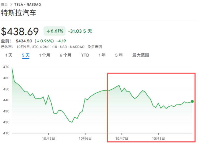 可事实是,在丐版 3&Y 官宣的 10 月 7 日,特斯拉的股价直接原地就跌了 4.45% ,蒸发了超过 4630 亿美元的市值。