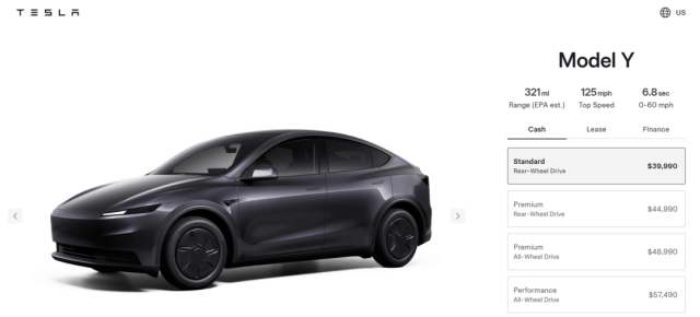 从特斯拉的美国官网上看,丐版毛豆 Y 的定价是 3.996 万美刀。参考现款 Y 的 4.499 万美刀,丐版的价格降幅也就只有可怜的九分之一。
