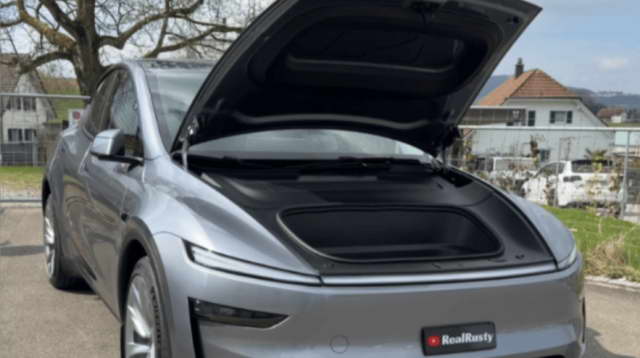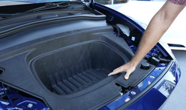 不仅前备箱的本身的材质从之前防水的硬塑料变成了不防水的纤维复合材料,甚至就连边上的塑料覆盖件特斯拉都省了,直接就让前舱的结构这么敞开放着。