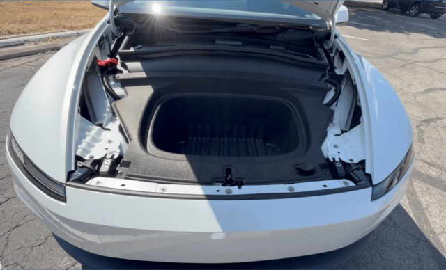 最抽象的部分我觉得就是它前备箱开启后的区域了。大伙看这是此前毛豆 Y 打开前备箱的样子。