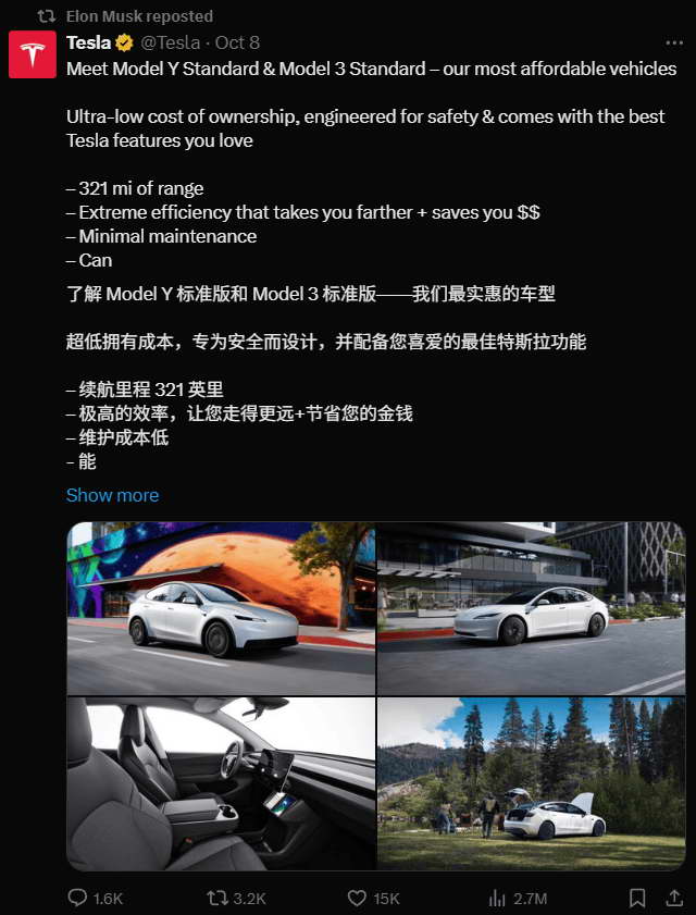 就在昨天凌晨,特斯拉依旧是悄咪咪的在自家官网公布了两台新车:Model Y 和 Model 3 标准版( standard )的配置和价格。