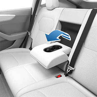在现款的毛豆 Y 上,后排座椅的中间可以像这样放倒下来变成一个扶手加杯架。