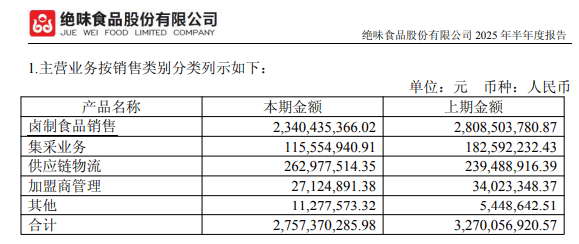 2025 年上半年的财报中,绝味实现营业收入 28.20 亿元,同比下降 15.57%,归母净利润为 1.75 亿元,同比下降 40.71%,狂跌了四成。