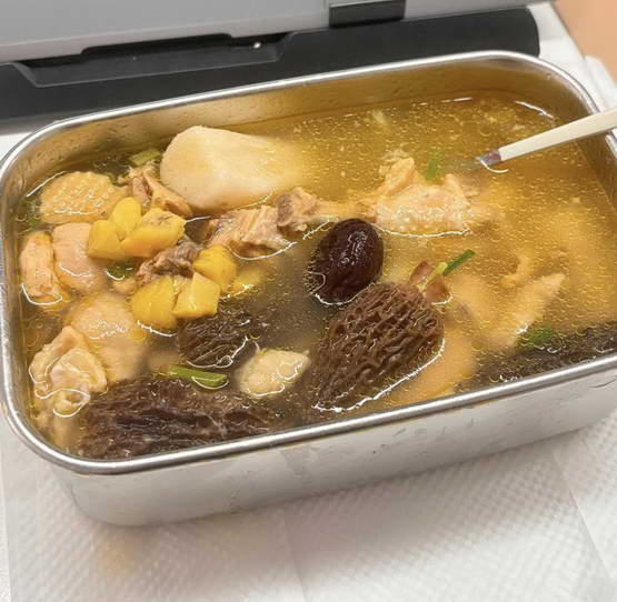 4️⃣后面就是加水放食材,羊肚菌必加,很鲜美,板栗根据自己喜好可加可不加(做过两次,口味上感觉没太大区别),我是用电饭煲煮的,大概两个半小时,最后放盐,出锅前撒点葱花~