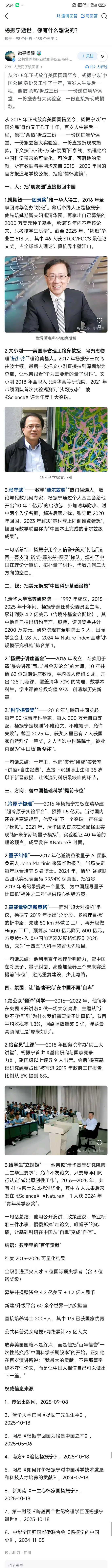 » 杨振宁贡献很大,科学巨人,华人之光