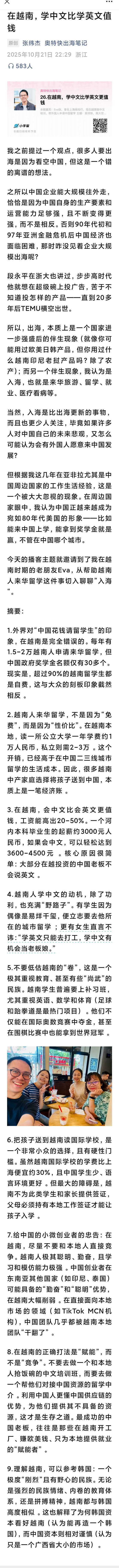 很颠覆啊。每年有 1.5-2 万越南人申请来华留学,但中国政府奖学金名额仅有 30 多个。现实是,超过 90% 的越南留学生都是自费,这与大众的刻板印象截然相反。