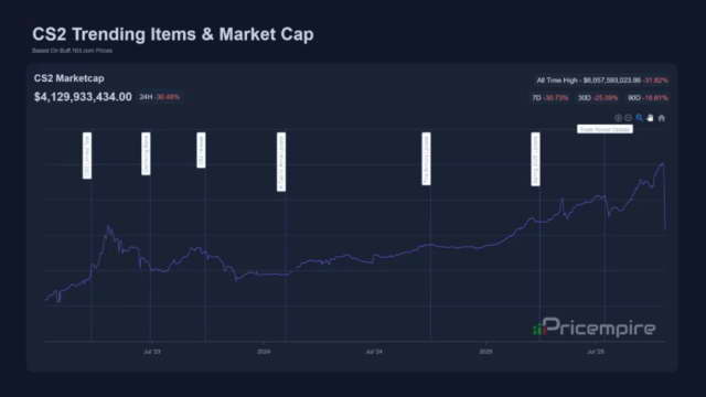 CS 更新的影响有多大呢?科创板日报称,CS 游戏饰品市场估值从 59 亿美元暴跌至 42 亿美元,一日蒸发近 20 亿美元。
