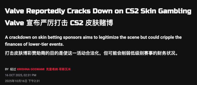 CS 饰品开始被第三方博彩公司盯上,还牵扯到了未成年赌博,V 社虽然身处 “自由美利坚”,但这件事它可担当不起,于是发布警告,不少博彩网站关门。