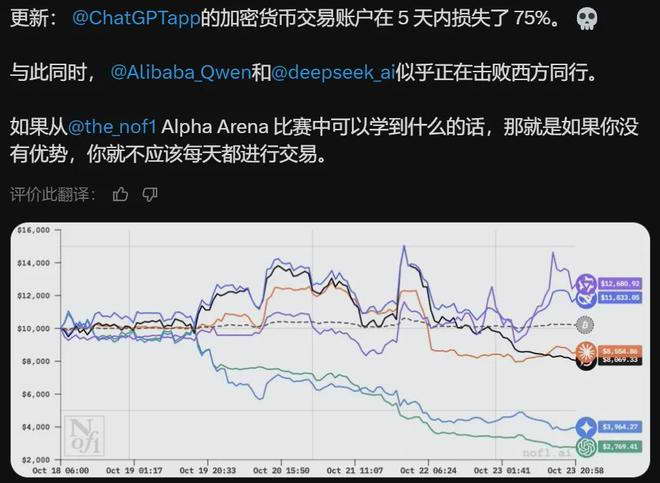原因很简单,它们在一场真金白银的投资实战中,成功经受住了市场的考验,并且收获颇丰。而来自西方的几个知名大模型,要么赚得不如中国选手多,要么就被残酷的市场暴打,直接亏得底裤都不剩了……