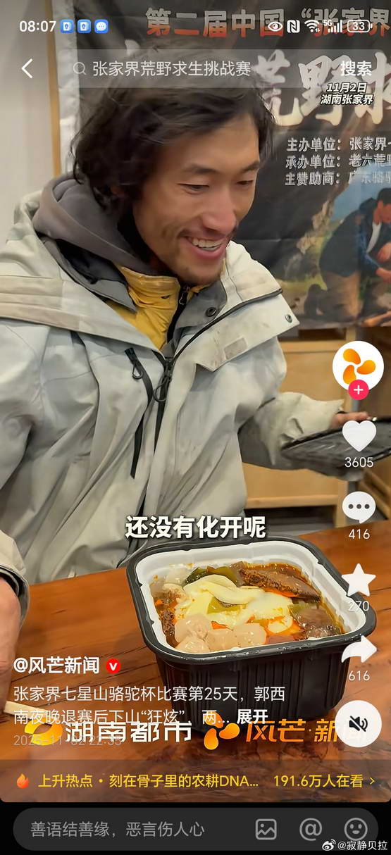 @寂静贝拉: 湖南那边搞了一个荒野求生大赛。