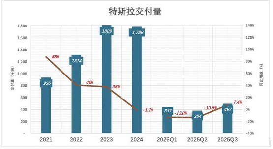 就拿最简单的交付量来说,特斯拉从去年开始,受马斯克 “考公” 和政治言论影响,交付量就一直在下滑。