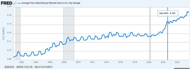 2000 至 2025 年美国电价趋势