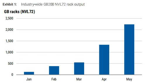 而根据 TrendForce 咨询公司今年 7 月的预估,2025 全年,Blackwell 系列的出货比例,将达到 NVIDIA 高阶 GPU 总产量 80% 以上,产能大大提升。