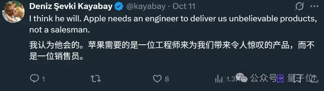 在此背景下,外界普遍认为苹果当前急需一位真正懂技术、懂产品的 CEO。