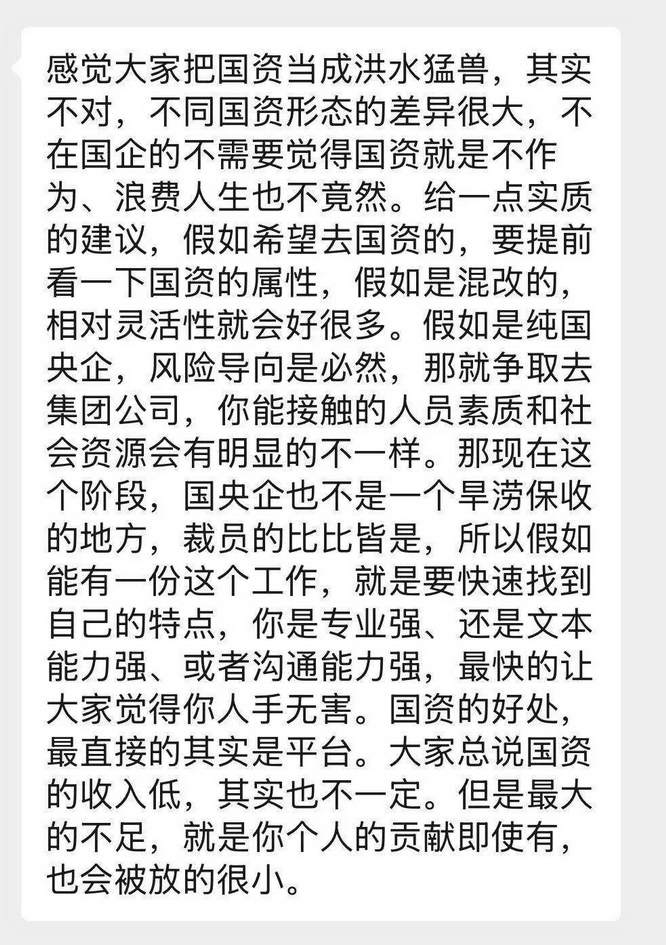 6. 最后,有一位在国资管理层任职的群友匿名跟我说: