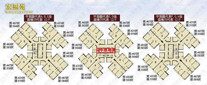 图里是小区平面图,可以看到基本是 40 多平方米套内面积的住宅,通常要隔成两房或者三房。