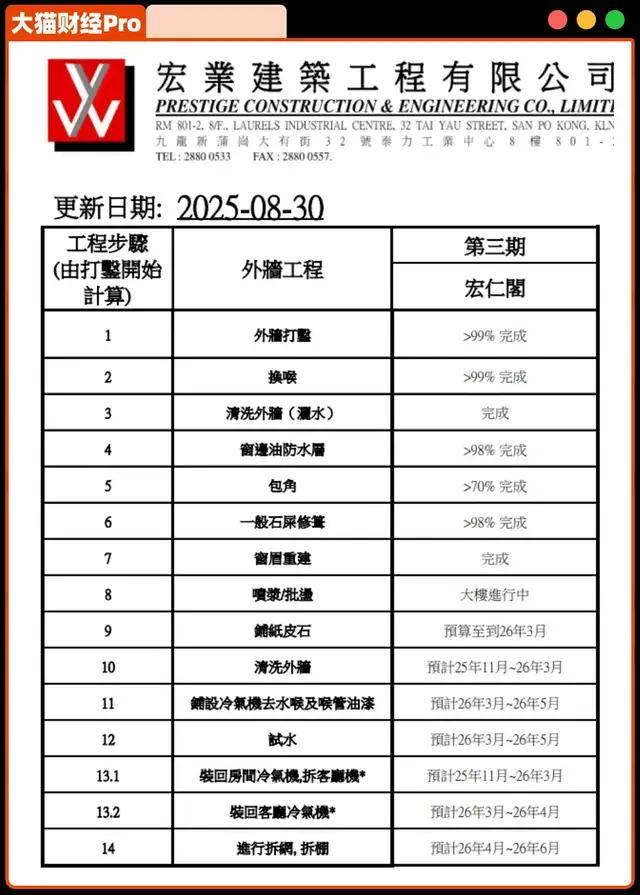 本来计划修一年,结果工程队中间还出现了变化,新公司介入,工期生生被推后了半年,同时又发现,外墙窗眉必须重建,钢筋不足需要补救,这些额外的费用到底多少还没算账。