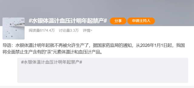 其实国家药监局,早在 2020 年就已经通知过了。2026 年 1 月 1 日起,禁止生产含汞体温计和含汞血压计产品。