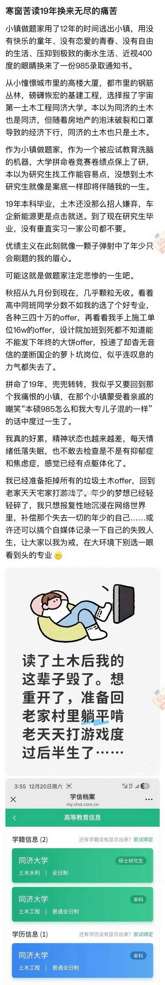 同济大学 19 年寒窗苦读换来无尽痛苦