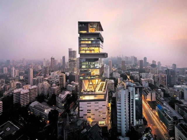 那已经不叫婚房了,而是坐落于孟买豪区的一栋 27 层 “私人摩天楼” 住宅 —— Antilia,外媒估值已超 20 亿美元。里面常驻约 600 名工作人员,随时伺候一家人的衣食住行。