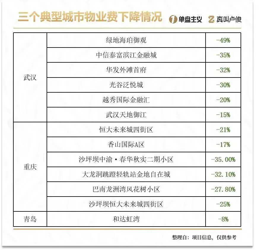 比如多个城市的小区竟然开始主动降物业费